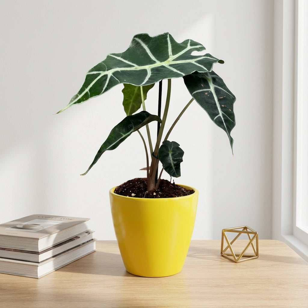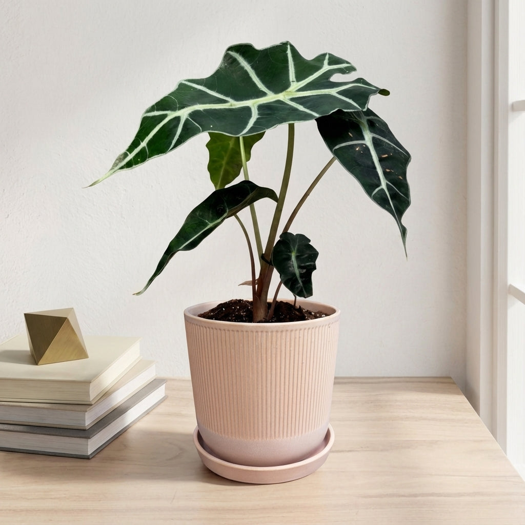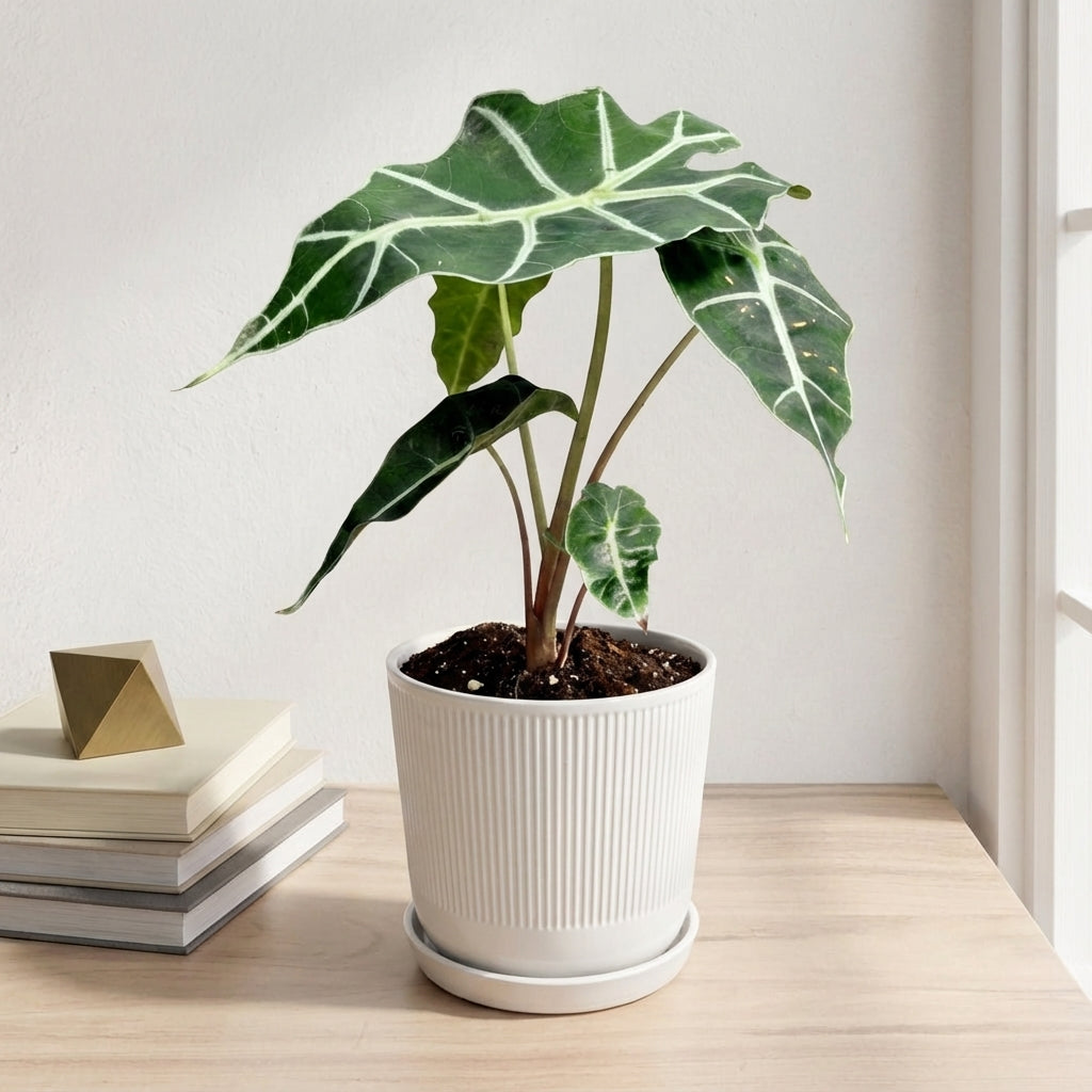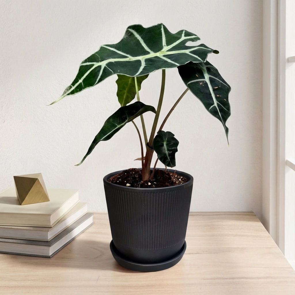אלוקסיה פולי היא צמח בית מרשים בקוטר 12 ס"מ בעל עלים גדולים וייחודיים עם גידים בהירים מובלטים. הצמח יוצר אווירה טרופית בבית ומוסיף נוכחות ירוקה ואלגנטית לכל חלל.