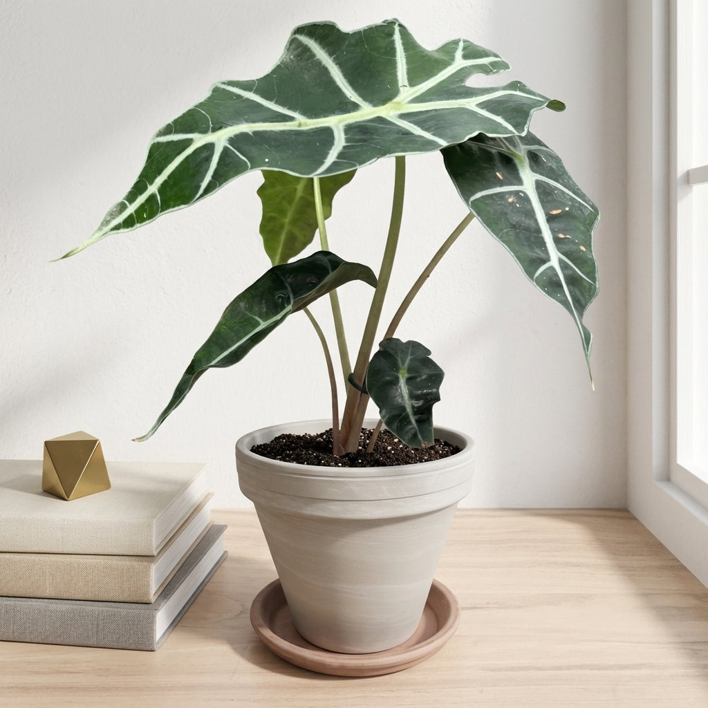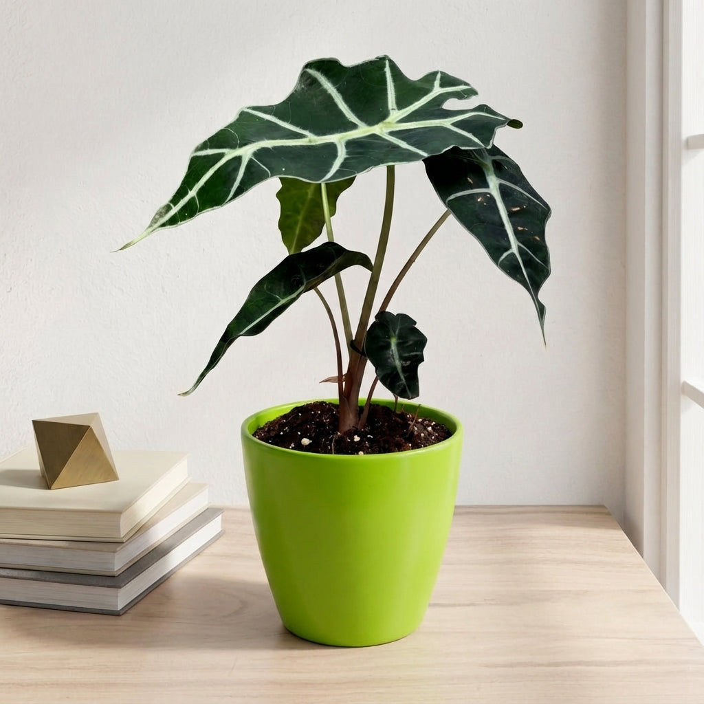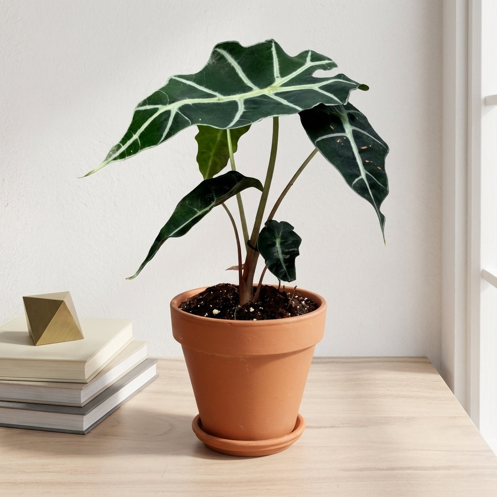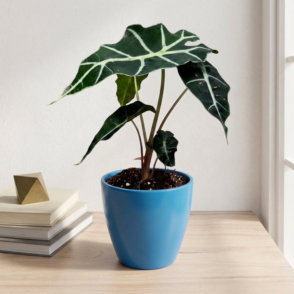 אלוקסיה פולי היא צמח בית מרשים בקוטר 12 ס"מ בעל עלים גדולים וייחודיים עם גידים בהירים מובלטים. הצמח יוצר אווירה טרופית בבית ומוסיף נוכחות ירוקה ואלגנטית לכל חלל.