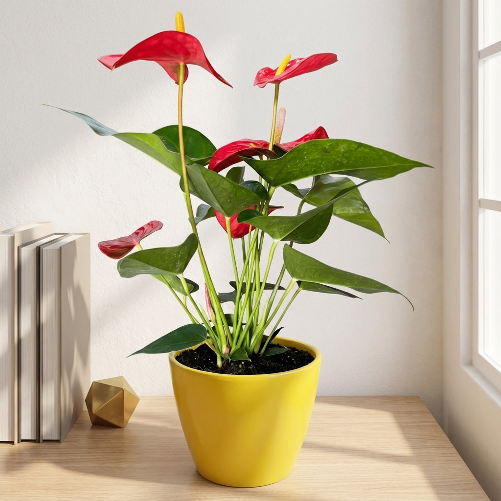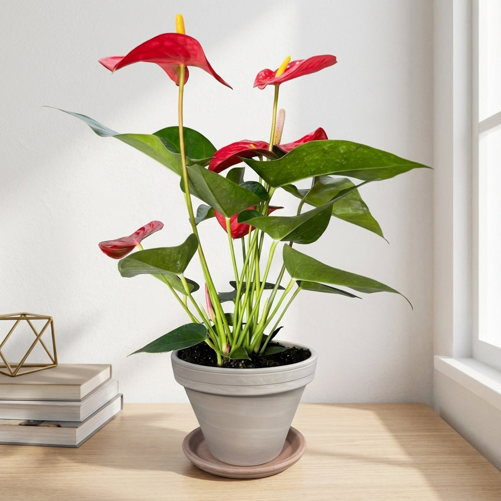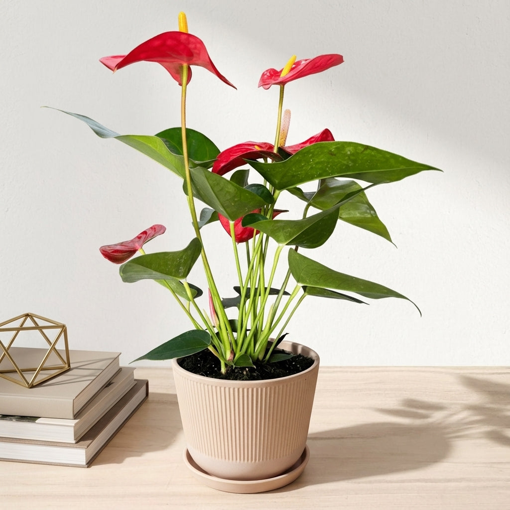 האנטוריום הוא צמח פורח מרהיב עם עלים ירוקים מבריקים ופרחים ייחודיים בצורת לב בגוונים עזים. הצמח מתאים במיוחד לעיצוב פנים ומוסיף אלגנטיות וצבע לכל חלל. עמיד וקל לתחזוקה, האנטוריום פורח כמעט כל השנה ומהווה בחירה מושלמת למתנה או לשדרוג הבית.