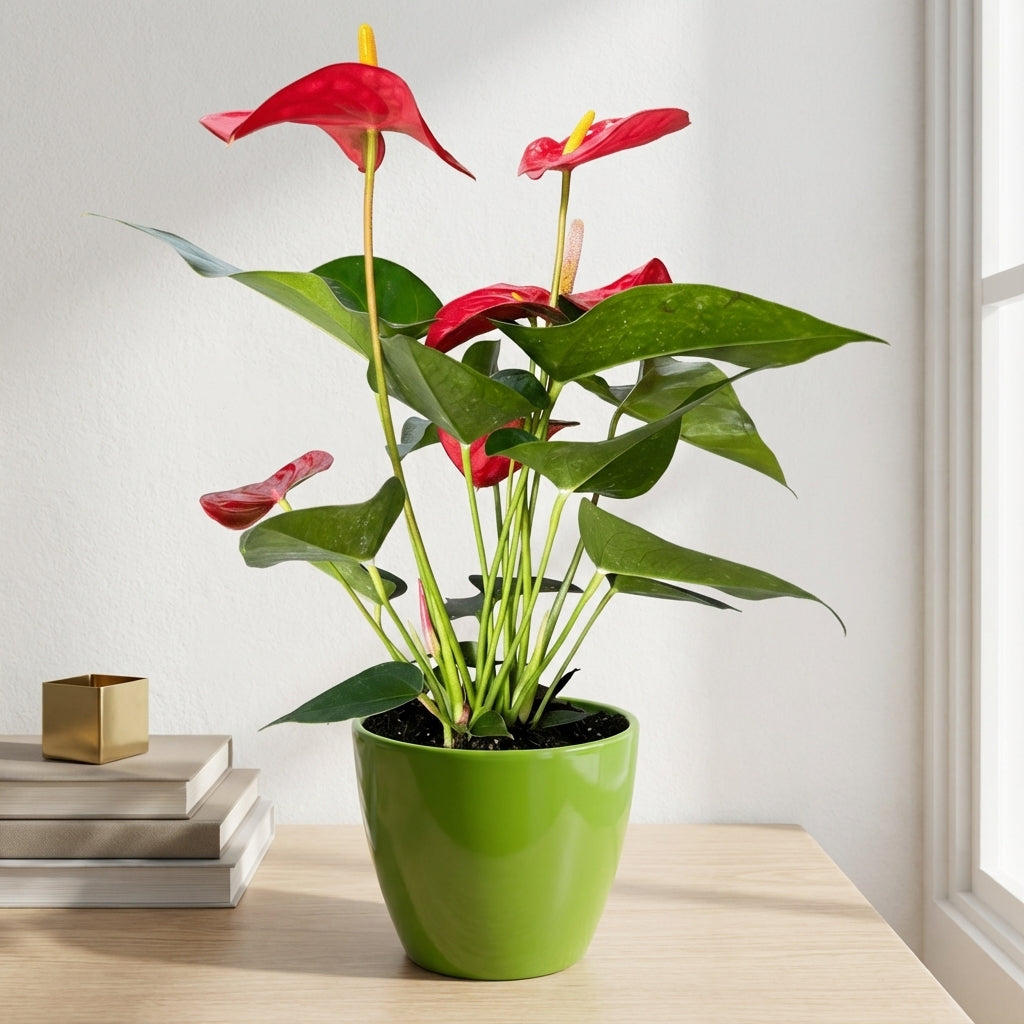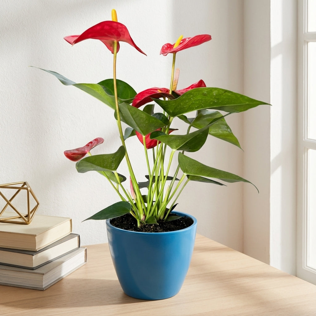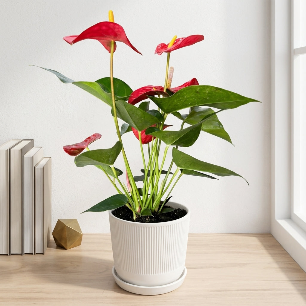 האנטוריום הוא צמח פורח מרהיב עם עלים ירוקים מבריקים ופרחים ייחודיים בצורת לב בגוונים עזים. הצמח מתאים במיוחד לעיצוב פנים ומוסיף אלגנטיות וצבע לכל חלל. עמיד וקל לתחזוקה, האנטוריום פורח כמעט כל השנה ומהווה בחירה מושלמת למתנה או לשדרוג הבית.
