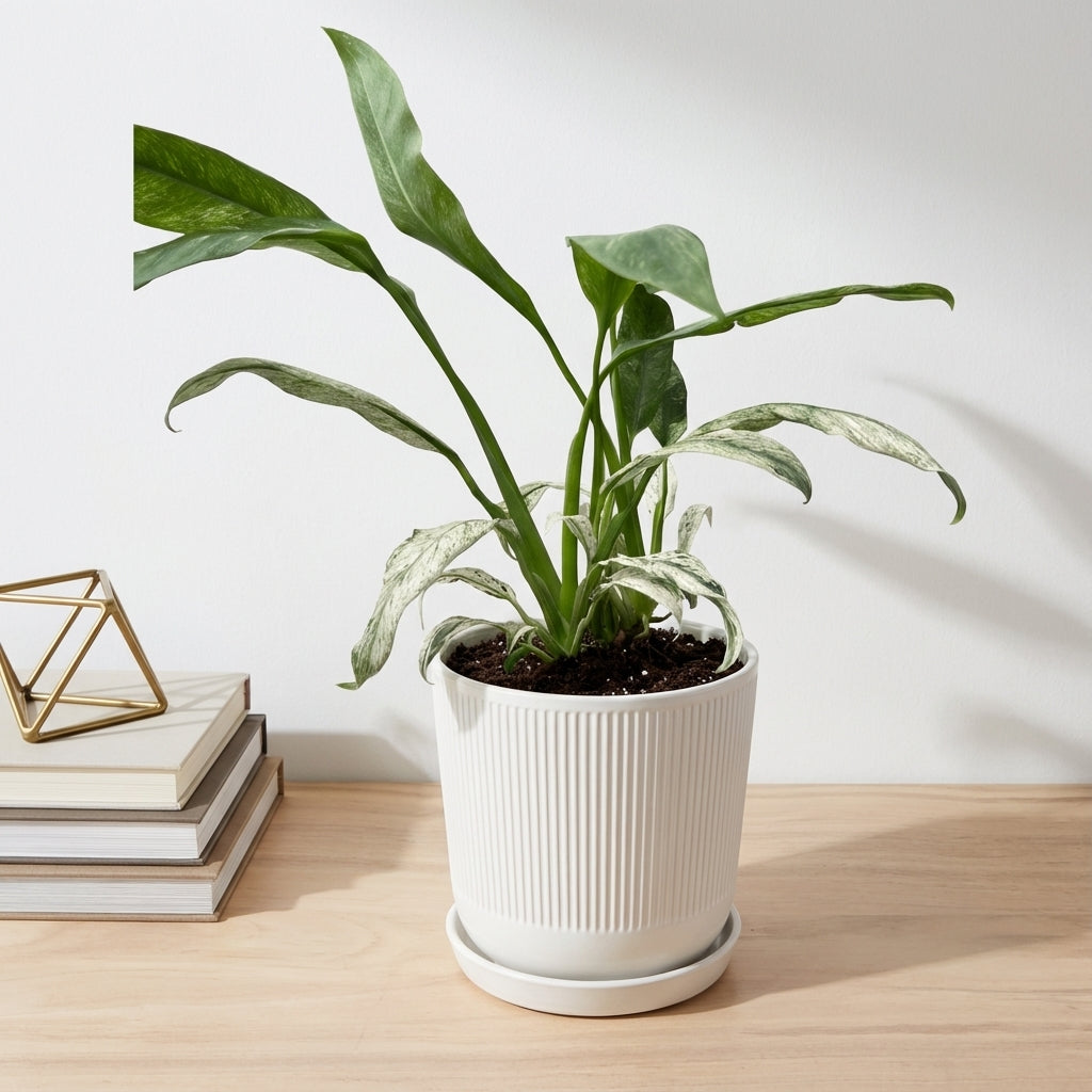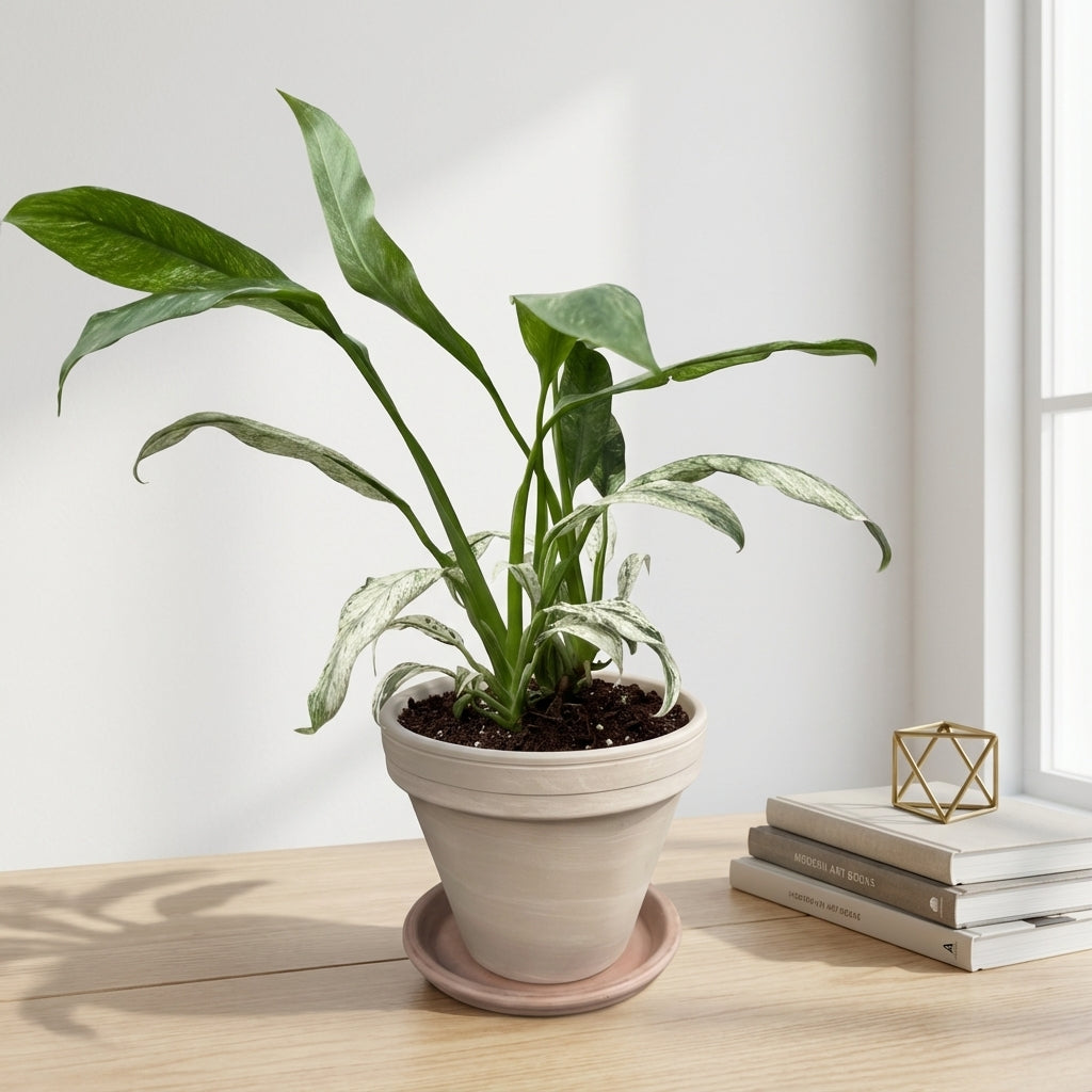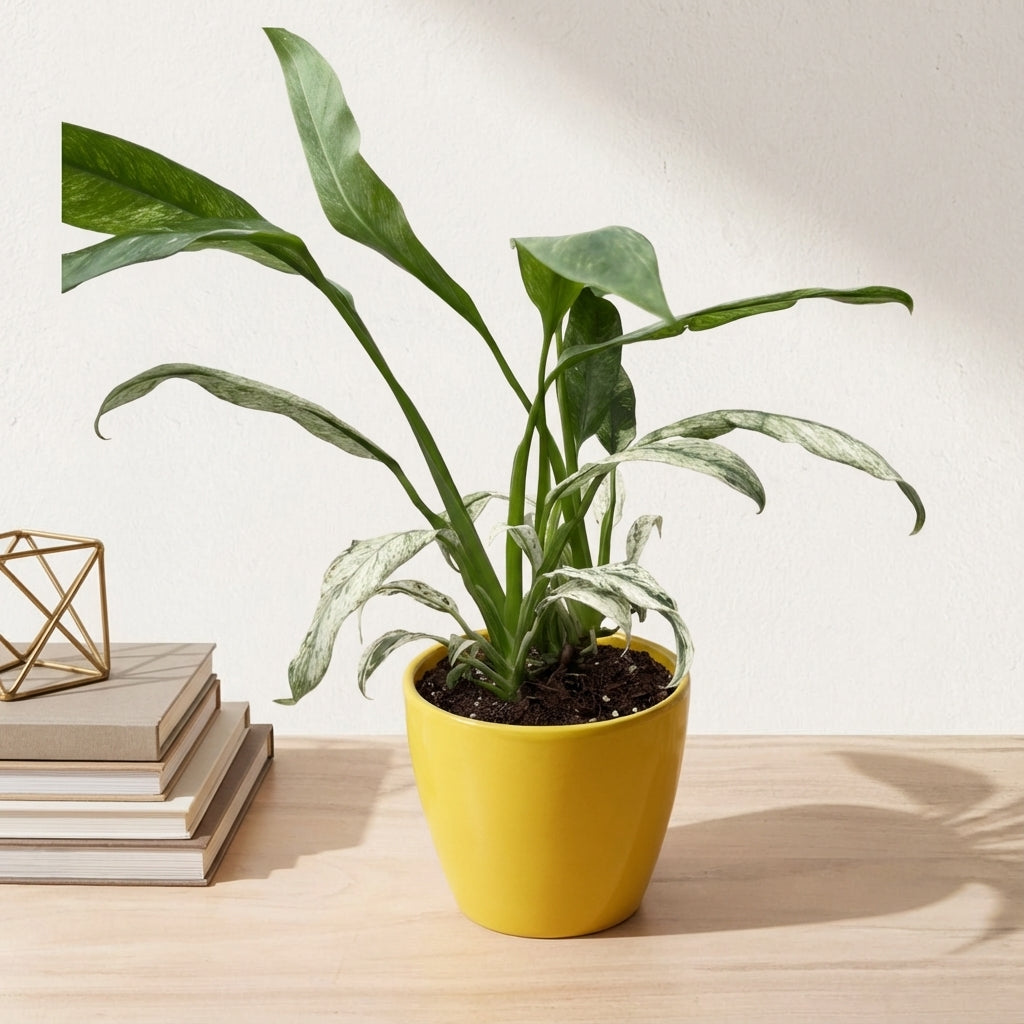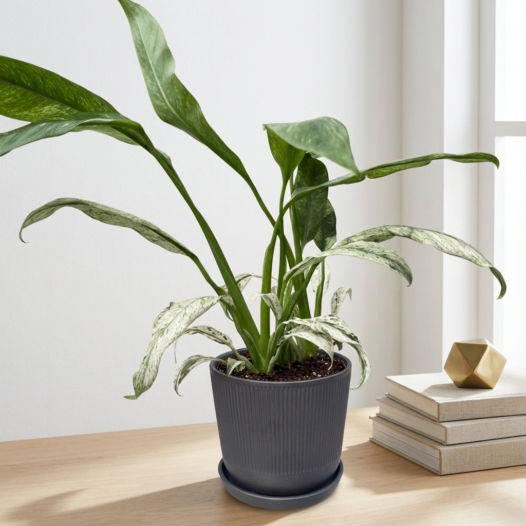 האפיפ גיגאנטום מרבל הוא צמח בית מרשים עם עלווה צבעונית ייחודית המשלב גוונים של ירוק כהה וקרם בדוגמת שיש טבעית, ומוסיף אלגנטיות ואופי מיוחד לכל חלל בבית.