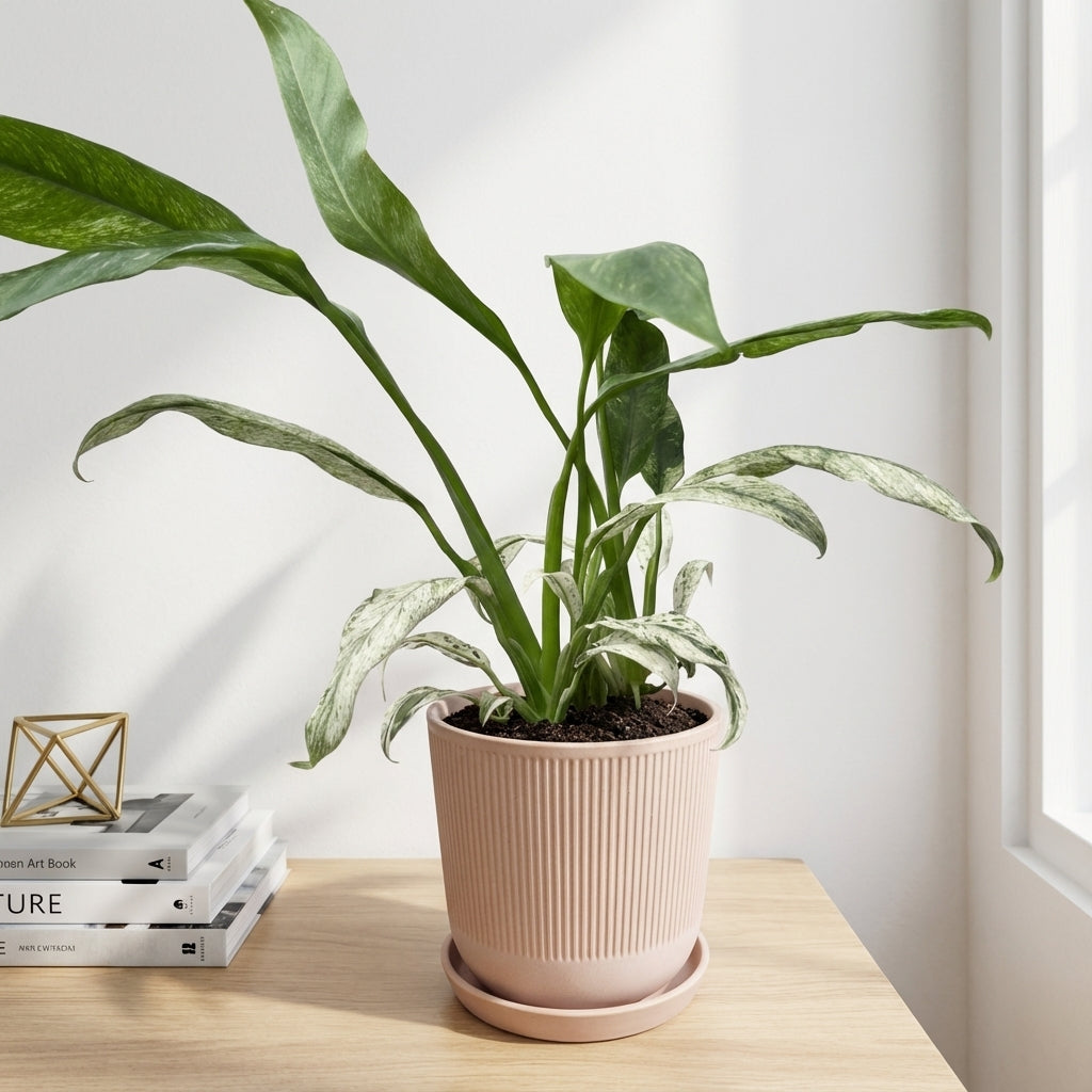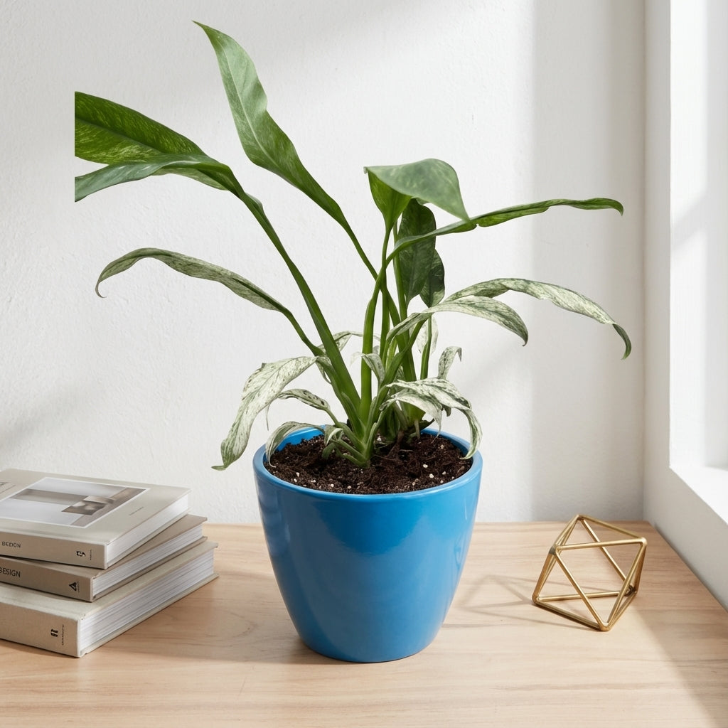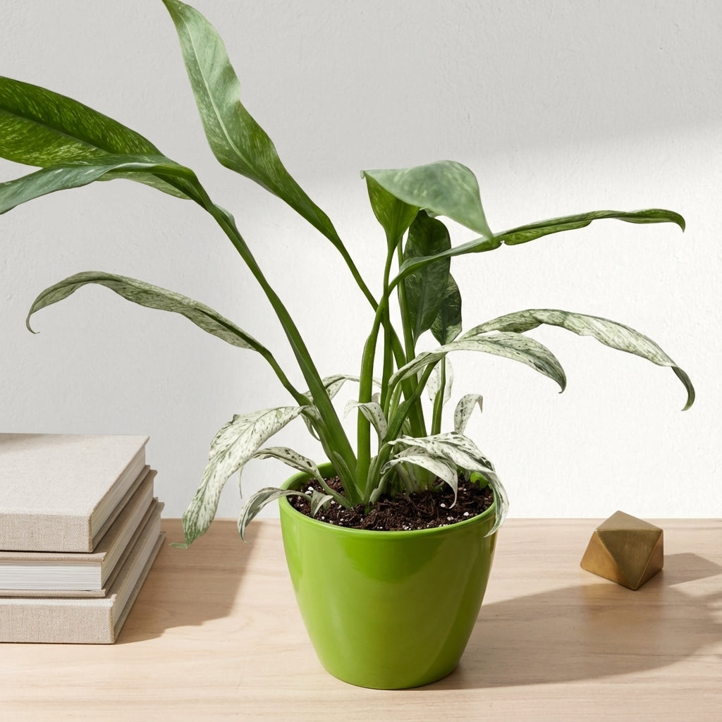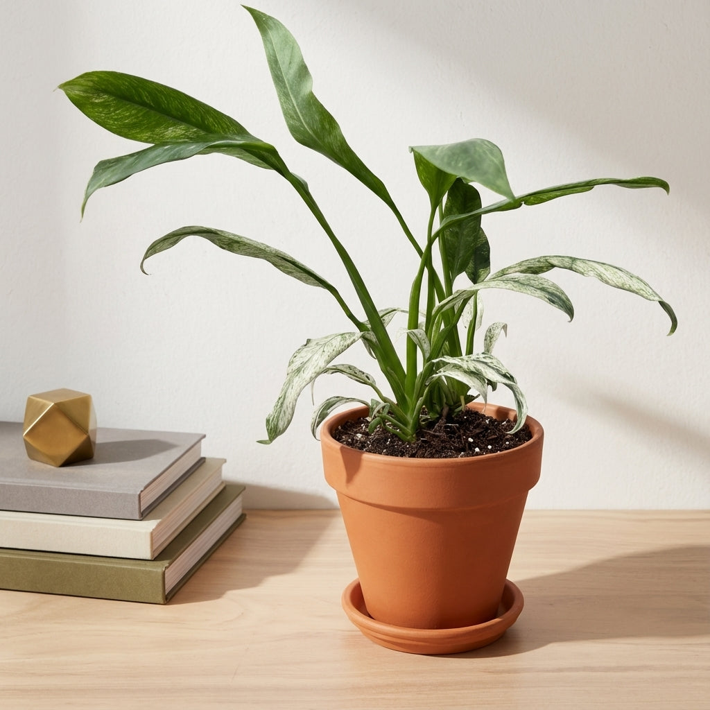 האפיפ גיגאנטום מרבל הוא צמח בית מרשים עם עלווה צבעונית ייחודית המשלב גוונים של ירוק כהה וקרם בדוגמת שיש טבעית, ומוסיף אלגנטיות ואופי מיוחד לכל חלל בבית.