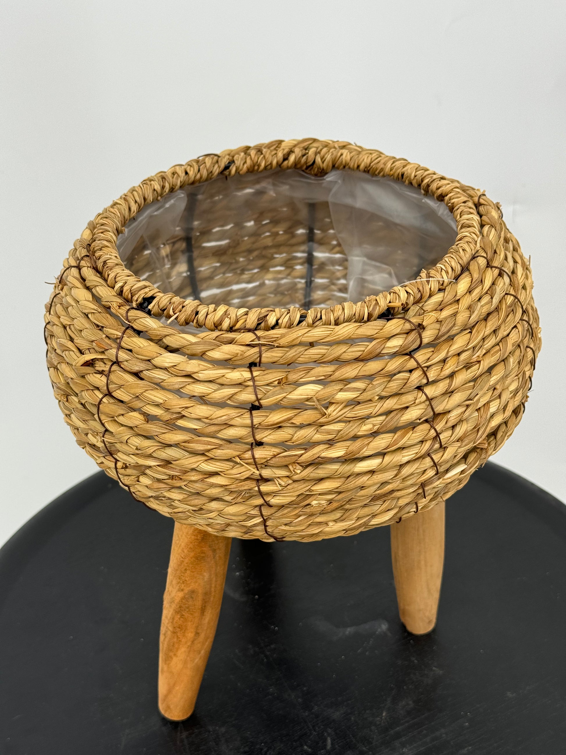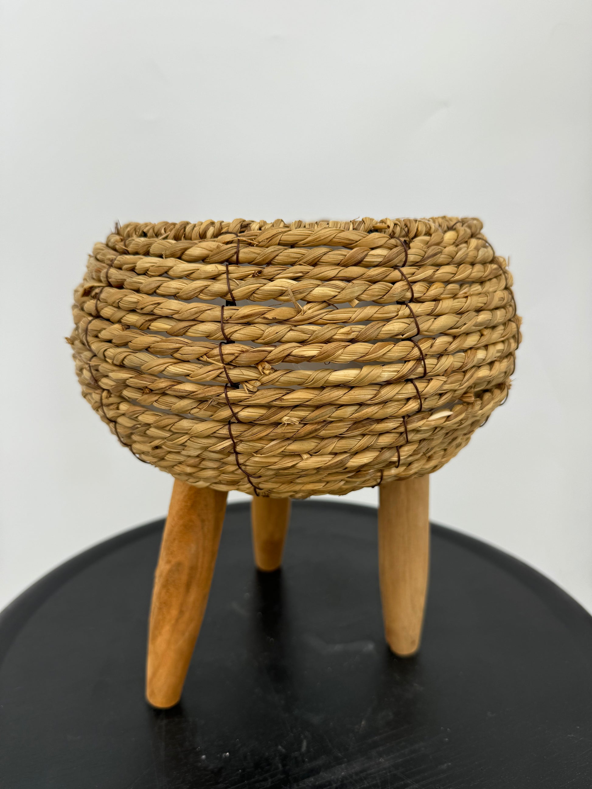 עציץ קש על רגלי עץ - קוטר 17 ס״מ 🌾