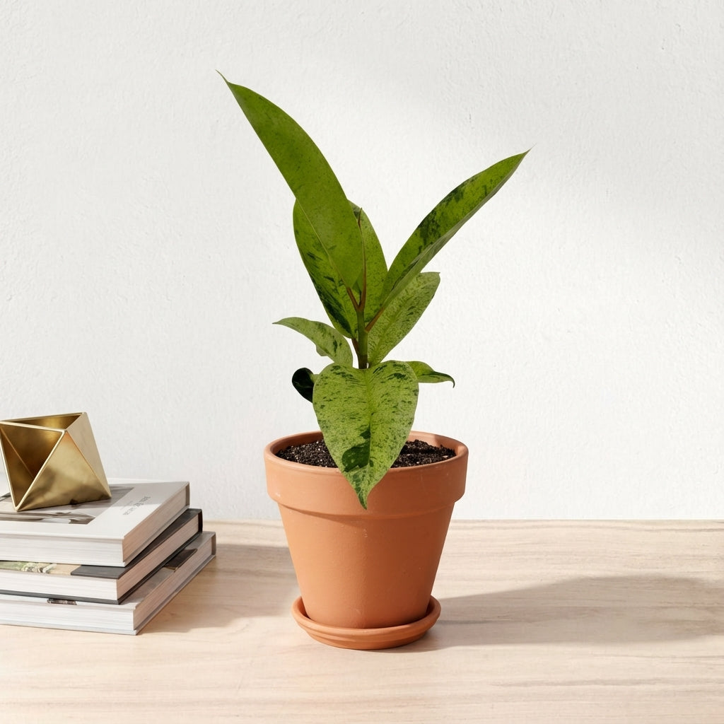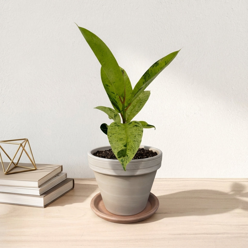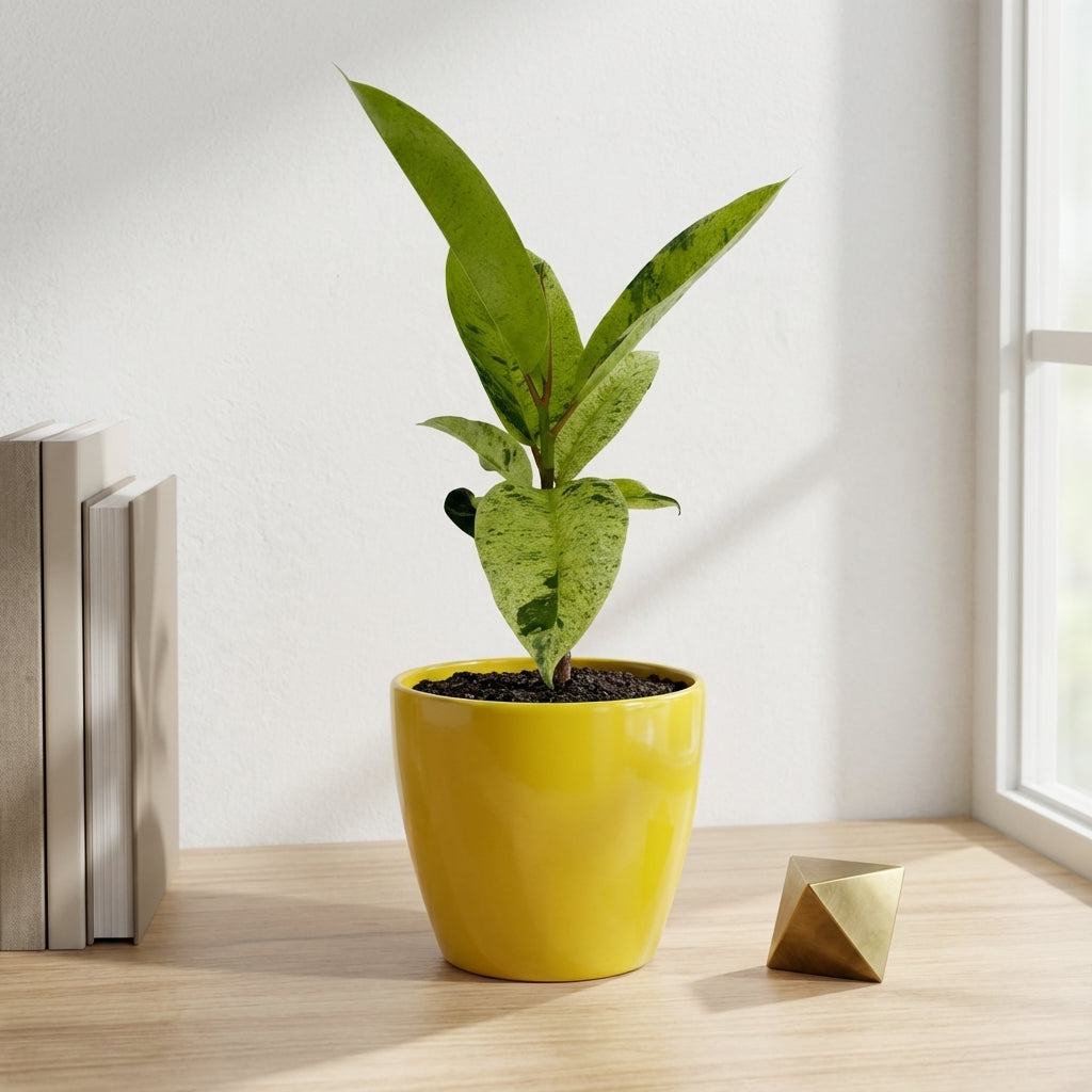 הפיקוס מונשיין מציע עלים ירוקים מרהיבים עם כתמים צהובים ירקרקים הדומים לאור הירח, ומהווה צמח נוי מרשים וקל לתחזוקה המעניק נגיעה אלגנטית ונקייה לכל חלל.