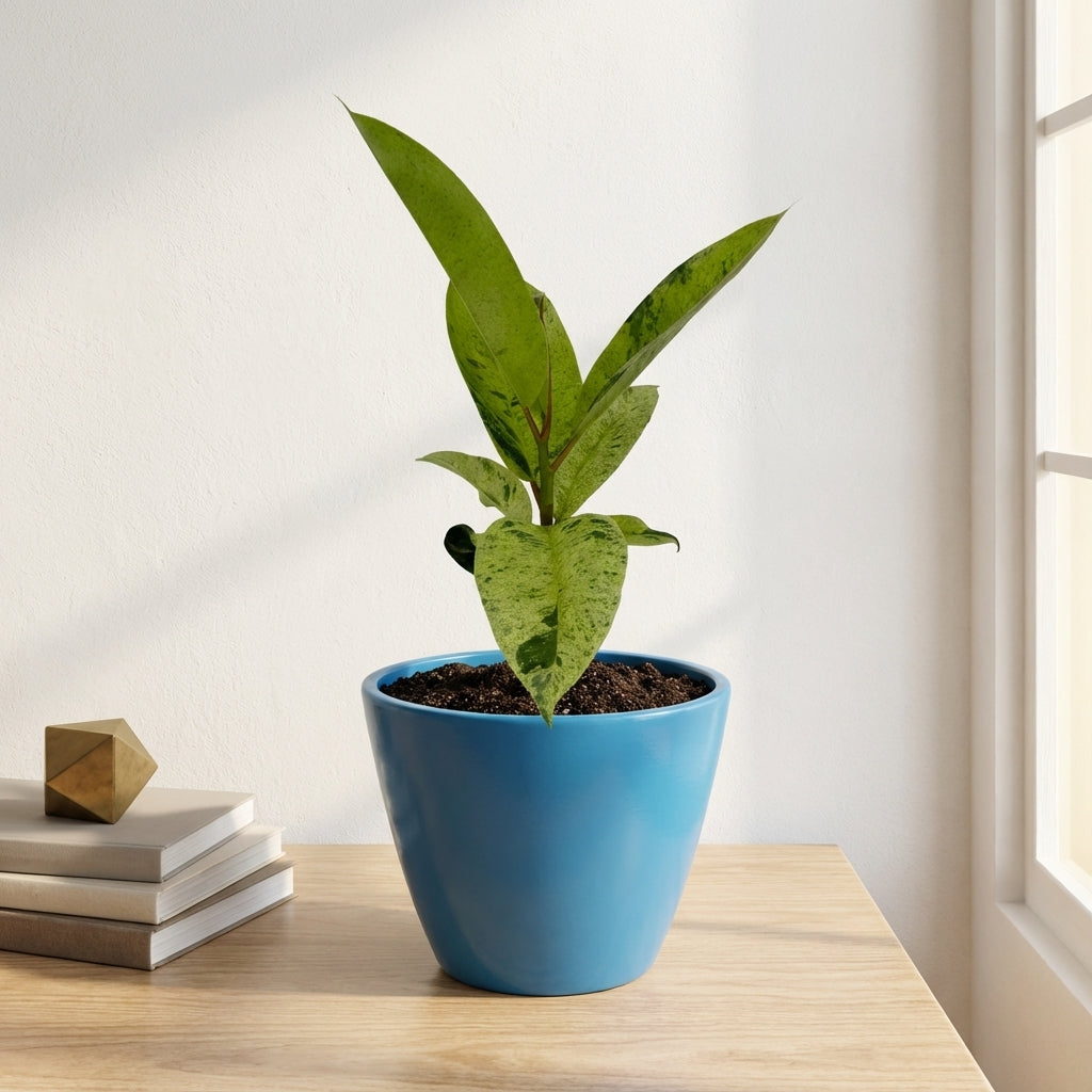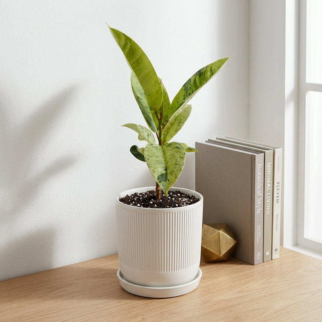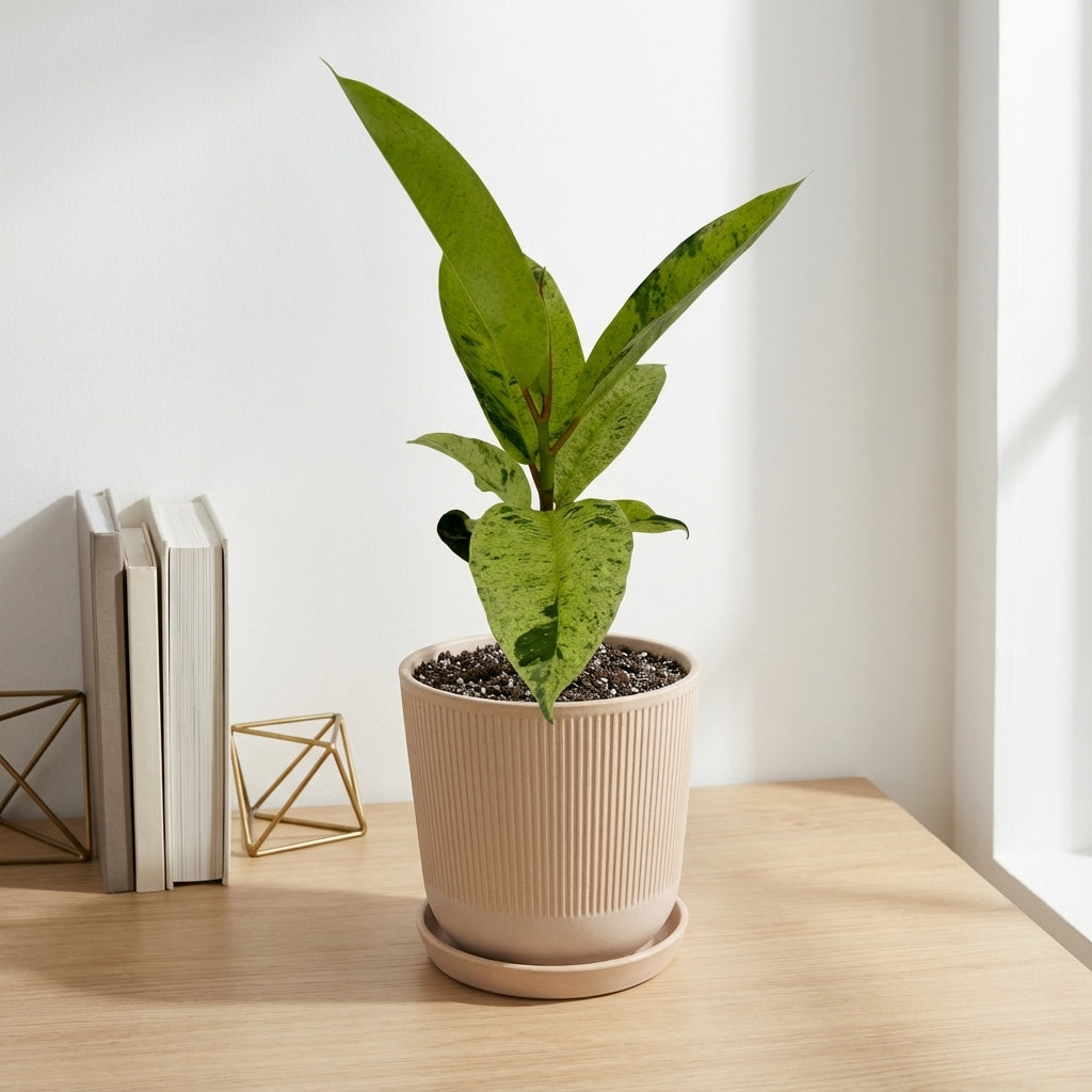 הפיקוס מונשיין מציע עלים ירוקים מרהיבים עם כתמים צהובים ירקרקים הדומים לאור הירח, ומהווה צמח נוי מרשים וקל לתחזוקה המעניק נגיעה אלגנטית ונקייה לכל חלל.