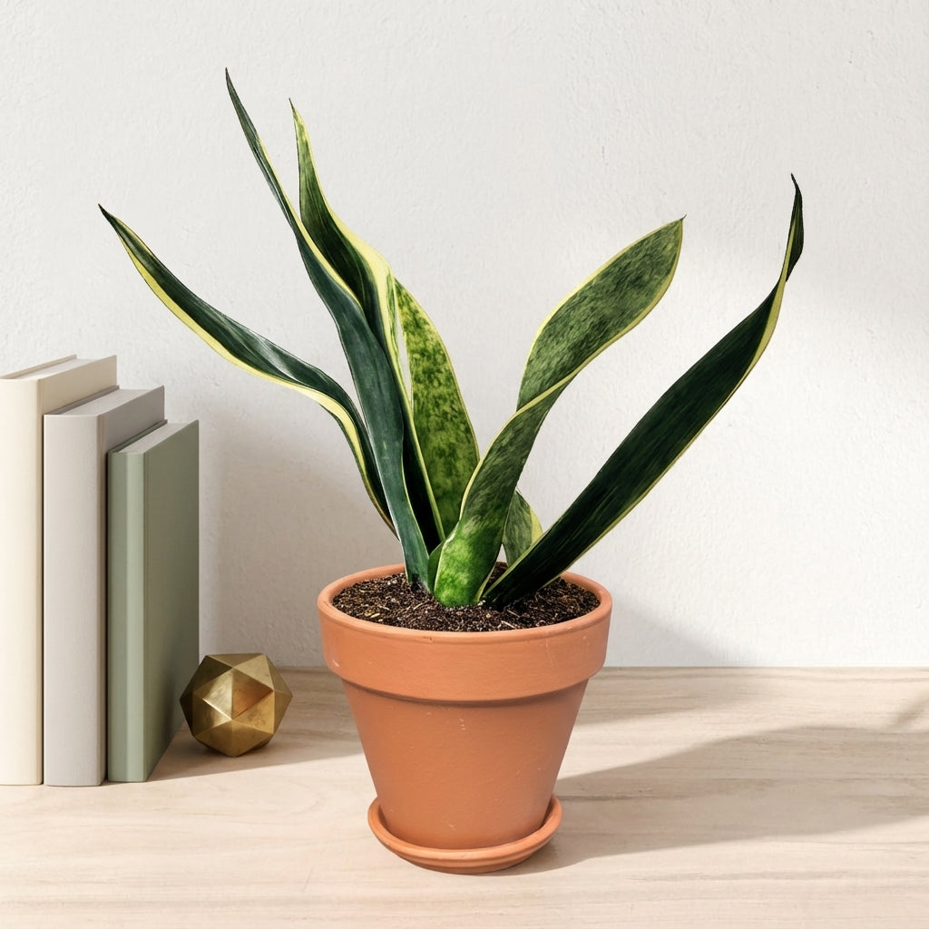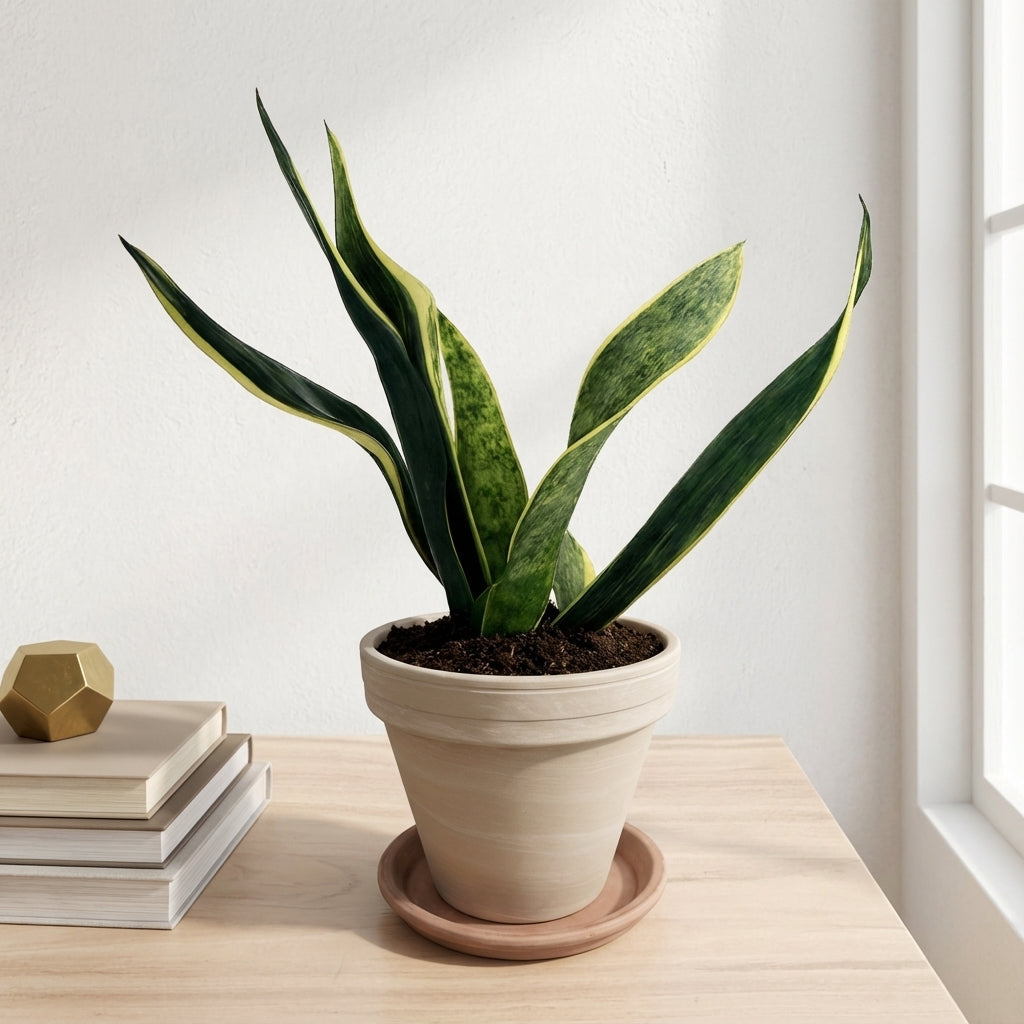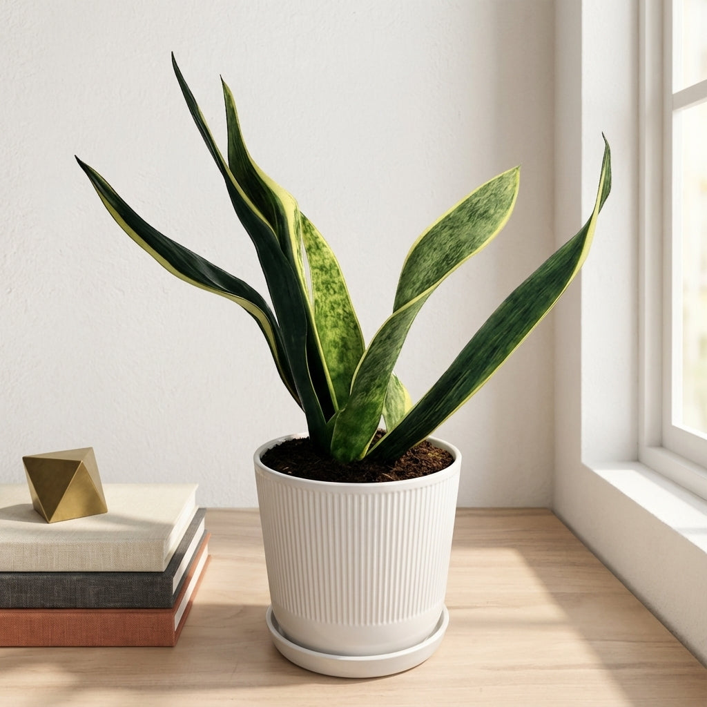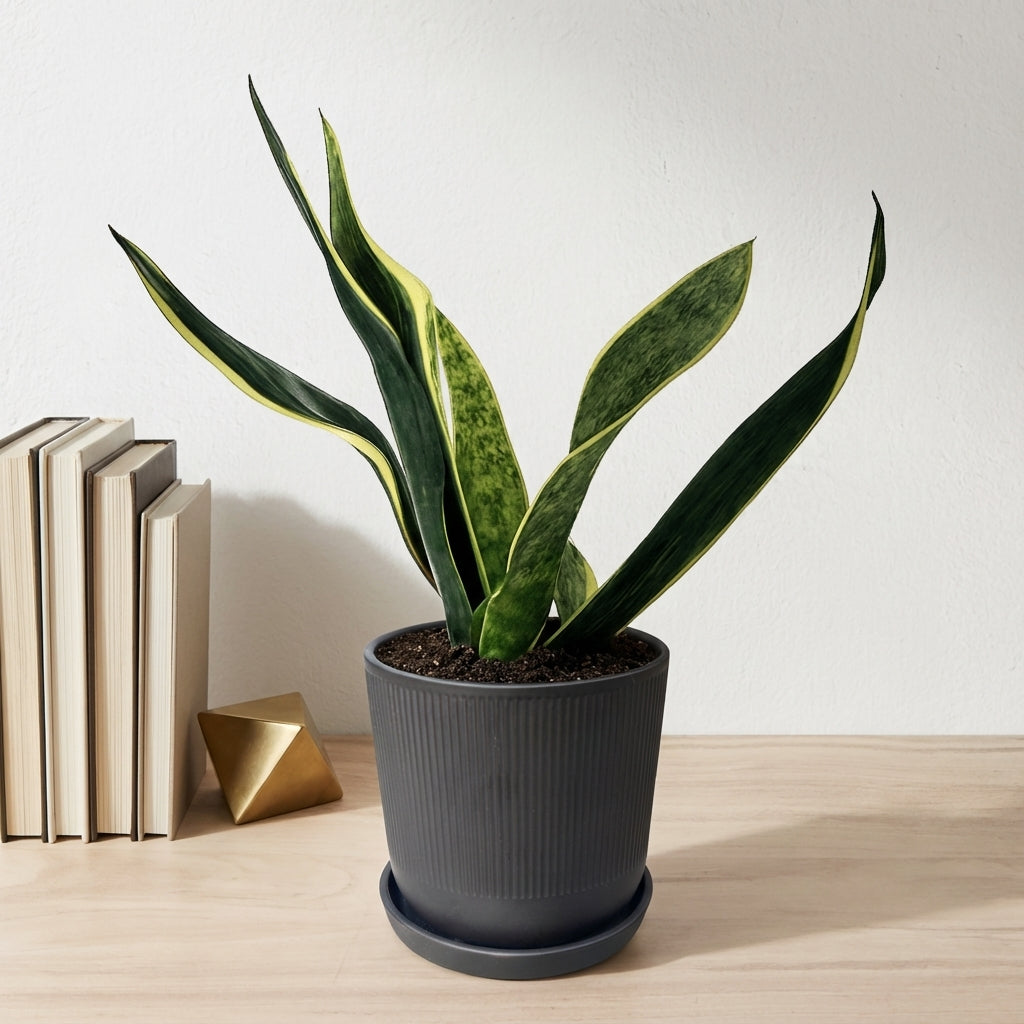 סנסווריה (Dracaena trifasciata, לשעבר Sansevieria) – הידועה גם כ"לשון החותנת" או "צמח החרב" – היא סוקולנטית עמידה במיוחד עם עלים זקופים ועבים, לעיתים בעלי שוליים זהובים או דוגמאות פסים ירוקות-אפרפרות. היא מתאימה מאוד למתחילים בזכות סבילות גבוהה ליובש ולתאורה נמוכה.