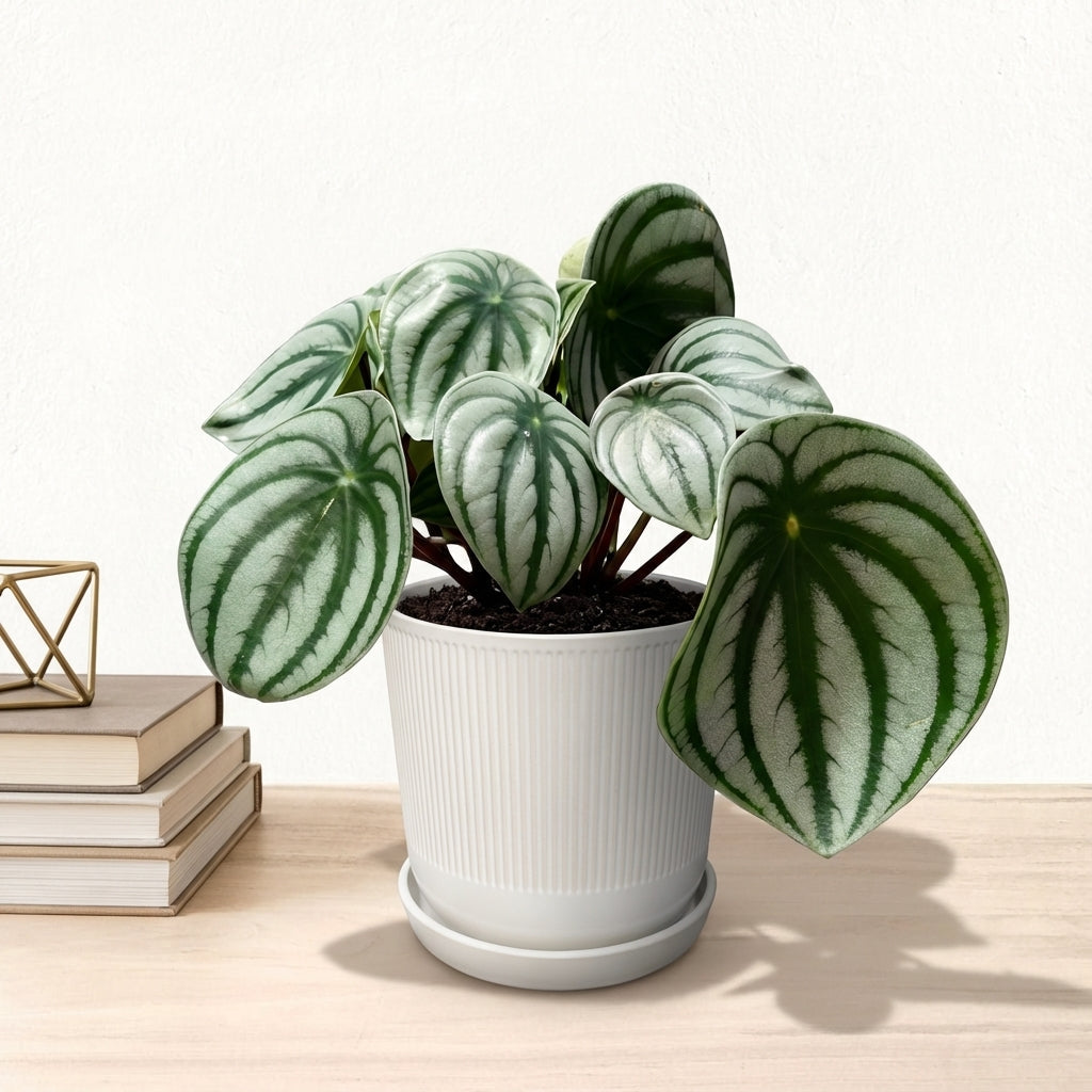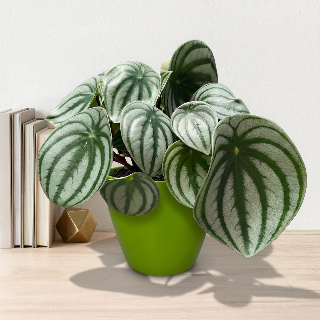 פפרומיה אבטיח (Peperomia Argyreia) היא צמח נוי מקסים בעל עלים עגולים ומרשימים בדוגמת פסי אבטיח בגוני ירוק וכסוף. הצמח קל לתחזוקה ומושלם למתחילים ומוסיף נופך טרופי ועליז לכל פינה בבית.