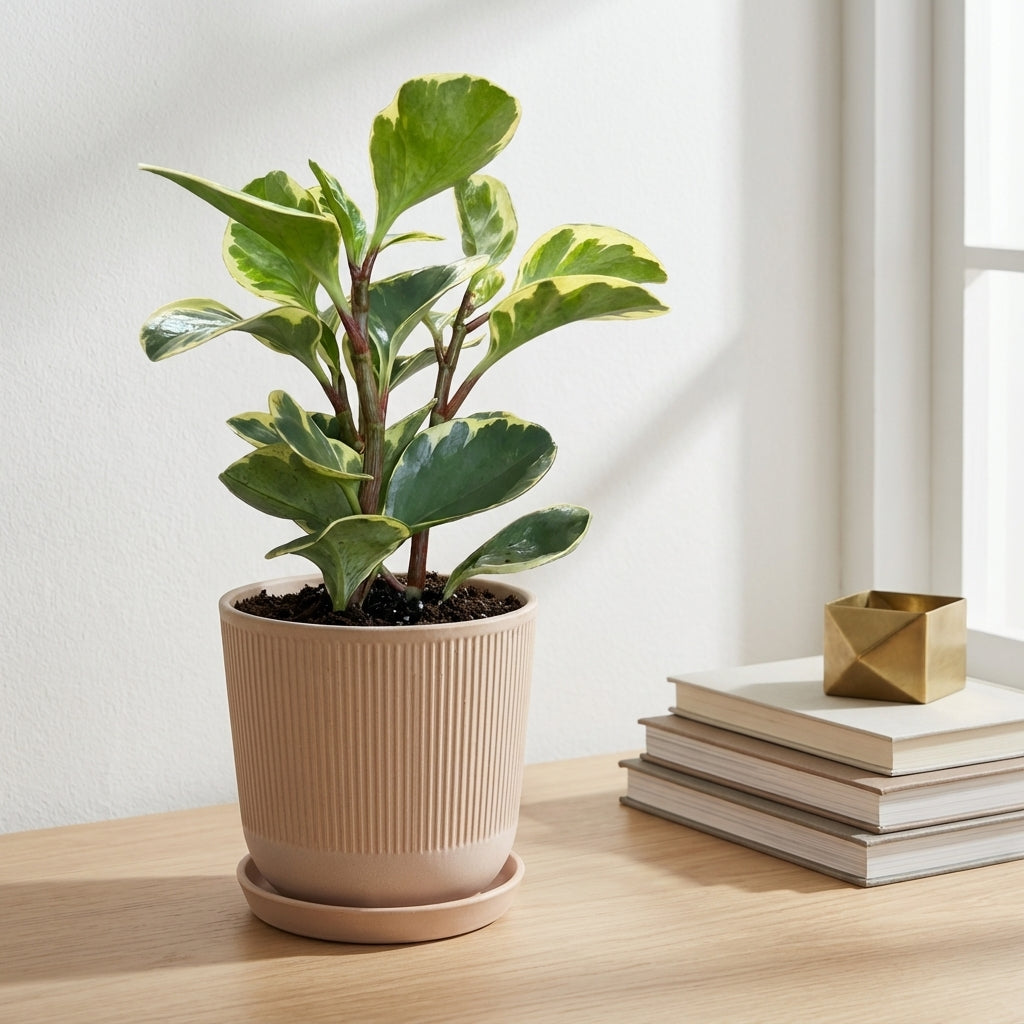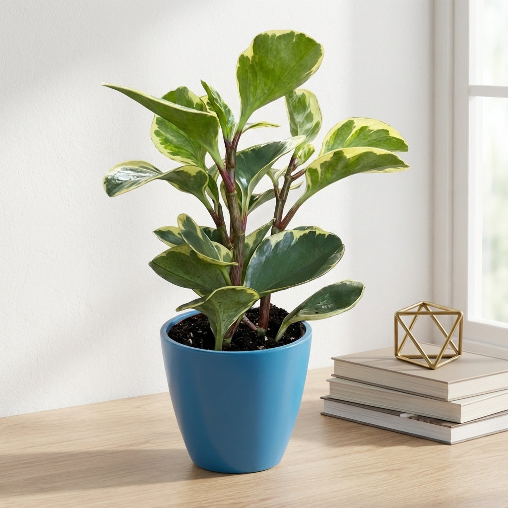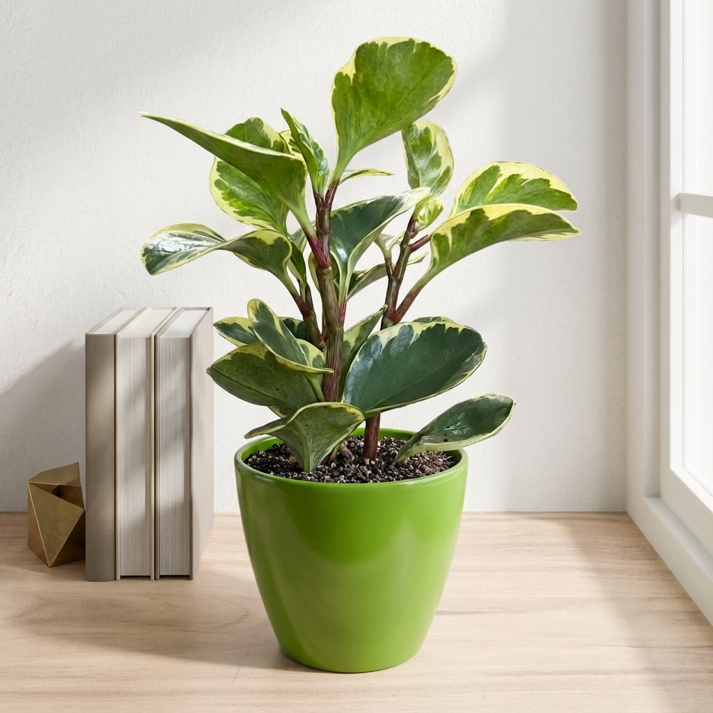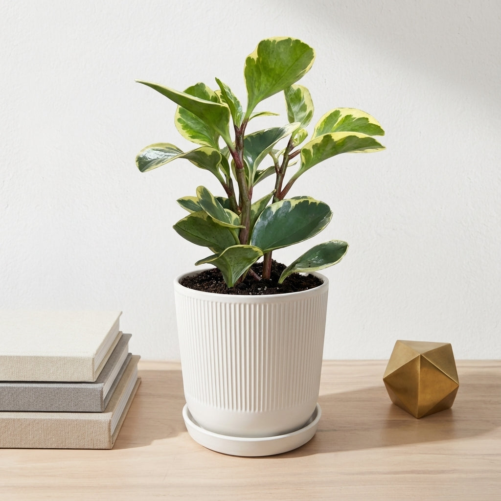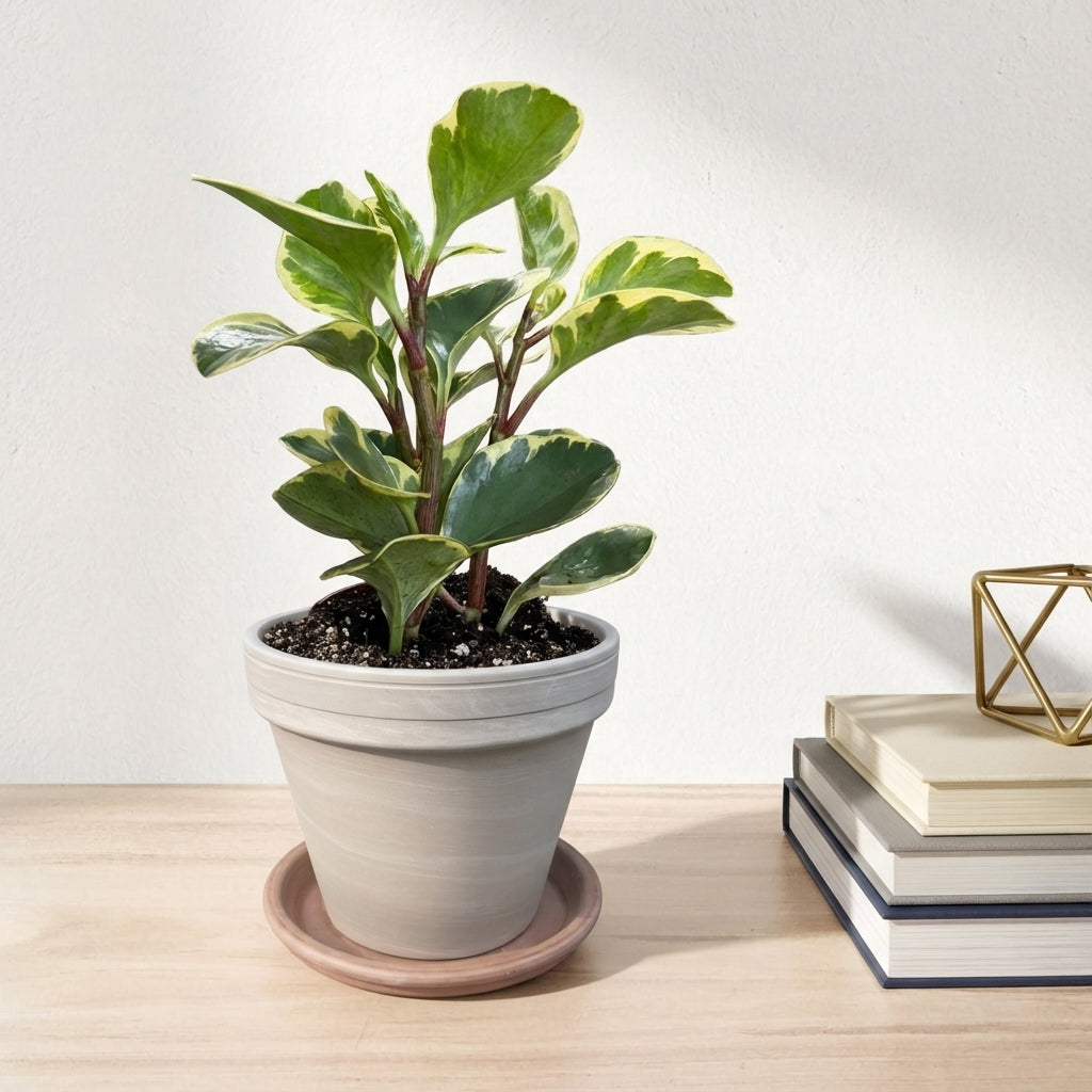 פפרומיה מגניפולה (Peperomia Magnifolia) היא צמח נוי קומפקטי ומקסים בעל עלים עסיסיים בגוון ירוק עם שוליים צהובים-קרמיים המעניקים לו מראה ייחודי ואלגנטי. הצמח קל לתחזוקה במיוחד ומושלם למתחילים ולמי שמחפש צמח בית שאינו דורש תשומת לב מרובה.