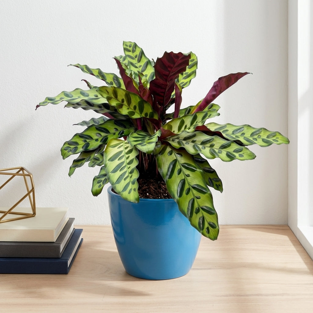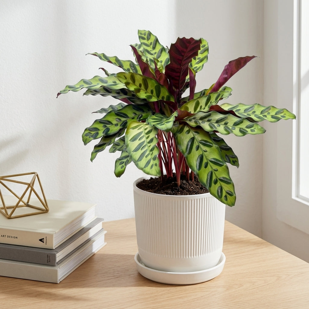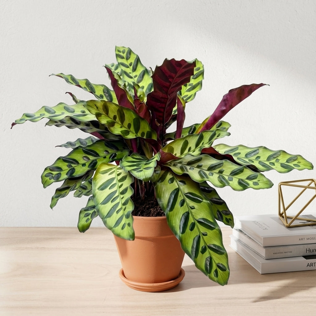 שמירה על צבעוניות העלים והתנועה הלילית: קלתאה אינסיגניס מגיבה באופן דרמטי לתנאי הלחות והאור. לשמירה על הדוגמה הנהדרת והצבעוניות, דאגו ללחות אוויר של 60–70% בשילוב עם אור עקיף בהיר (אך לא שמש ישירה). בנוסף, הצמח מבצע תנועת עלים יומית טבעית – העלים נפתחים בבוקר ומתקפלים בערב. אם העלים נשארים מקופלים גם ביום, זה סימן למחסור במים או ללחות נמוכה. השתמשו תמיד במים מסוננים או עומדים כדי למנוע הצטברות מלחים ושריפת קצוות.